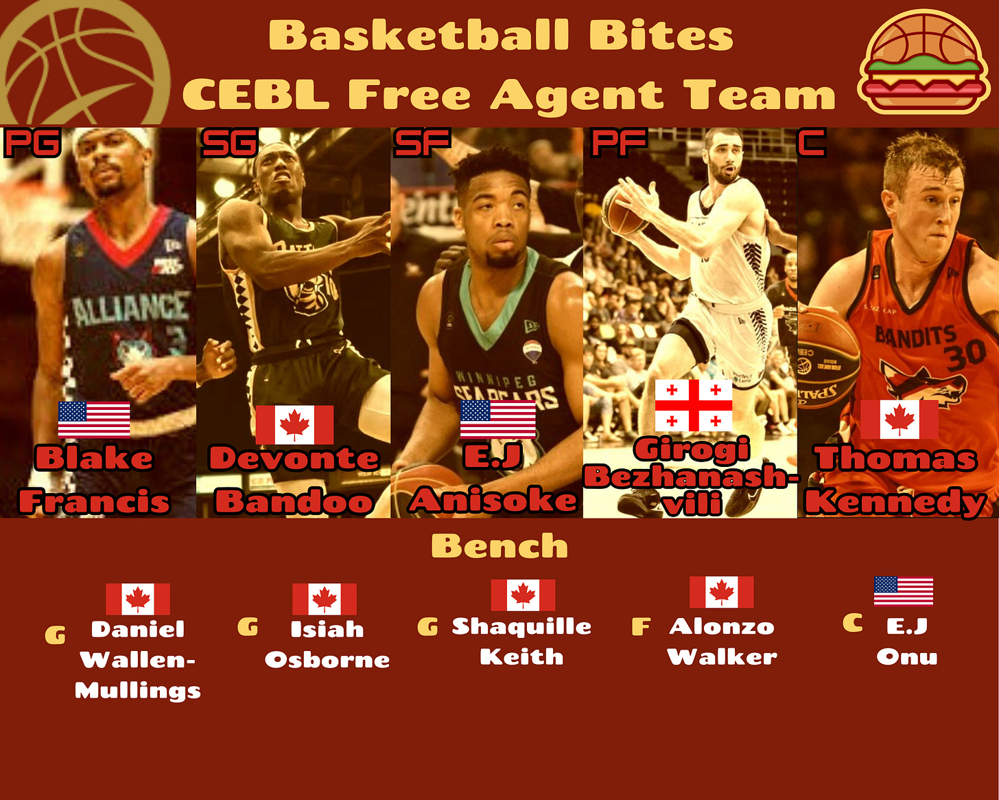 2) I have to believe they’d join my team – What I mean by that is, I tried to keep my expectations realistic on who I could sign. There are players who’ve been in the league and have gone on to join some of the biggest teams in FIBA, which is great for both the players and the CEBL, but also means it’s unlikely that they would come back North of the border. There are also players who signed with their hometown teams, and I believe would be unlikely to play anywhere else, so I left them off the list as well.